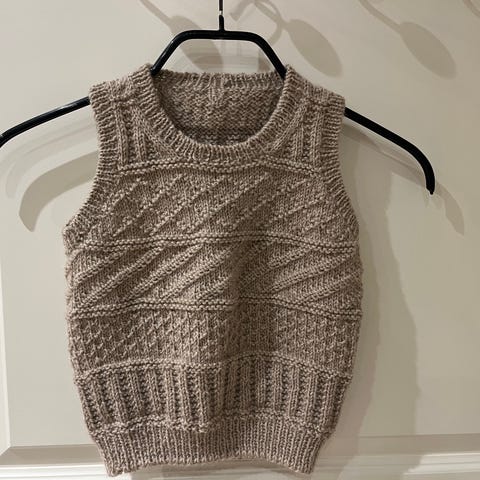 Hjemmestrikket vest i garnet isager alpaca 3, som er 100% alpakka.