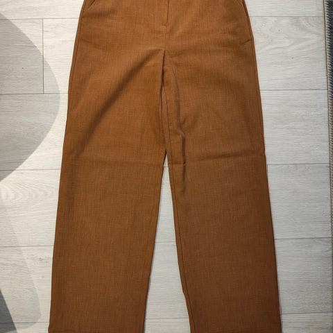 Fantastisk ullbukse fra Max Mara Studio for dame i størrelse M. Buksen er laget i ull. Klassisk modell med beltehemper i linningen, gylf med lukking foran og skrålommer i sidene. Pressfolder på bena gir et mer formelt uttrykk. Passer til bruk både til jobb og hverdag der man ønsker en enkel, nøytral ullbukse som holder deg varm og go.