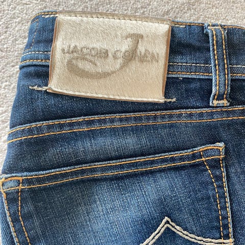 Selger en pent brukt Jacob Cohen bukse med utrolig fin vask og kul golfball detalj på knappelukkingen.