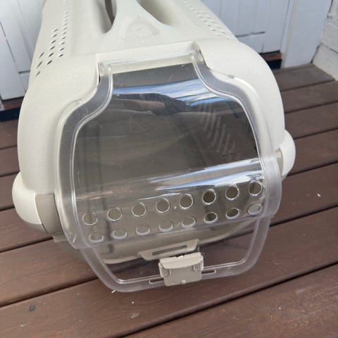 Dyrebur med mulighet for deling og transparent luke! Kayobas dyrebur er en svært brukervennlig modell som er stor nok til å fungere både som kattebur og hundebur for mindre hunderaser. Den stor, transparente luken sørger for at husdyret ditt får mer lysinnslipp i buret, samt at sikten inn i buret blir bedre. Dessuten er den enkel å åpne. Overdelen av buret kan løsnes fra underdelen, en funksjon som kan være svært praktisk når dyret synes det er ubehagelig å gå inn gjennom åpningen. På oversiden er det et bærehåndtak. Buret er i næringsmiddelgodkjent plast.
