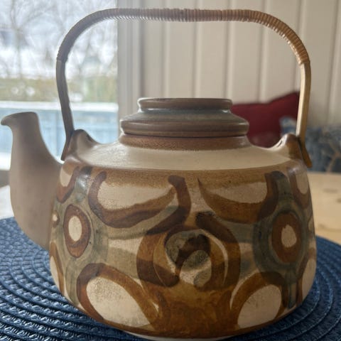 Vintage tekanne i keramikk med håndtak i bambus. I god vintage stand.
