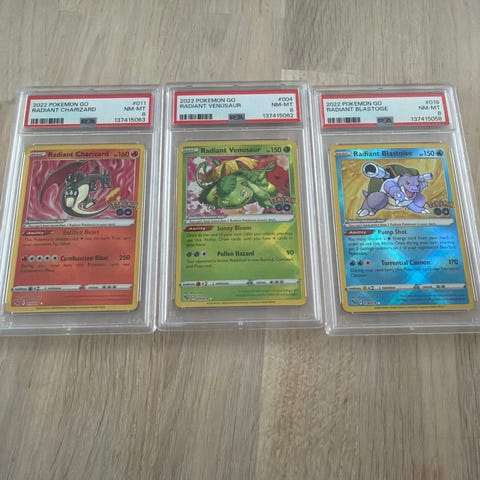Pokémon Radiant Greninja samlekort fra settet Astral Radiance (2022). Kortet er gradert av PSA med karakteren GEM MT 10 og er innkapslet i offisiell PSA-holder. Motivet viser Radiant Greninja med evnene "Concealed Cards" og "Moonlight Shuriken". Standard Pokémon-bakside. Egnet for samlere av Pokémon TCG og spesielt for de som fokuserer på Radiant-kort og Astral Radiance-settet.