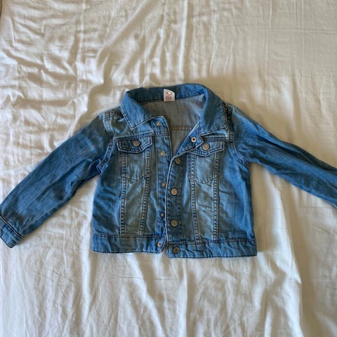 Lyseblå dongerijakke for barn i størrelse 98. Klassisk denimdesign med trykknapper.
