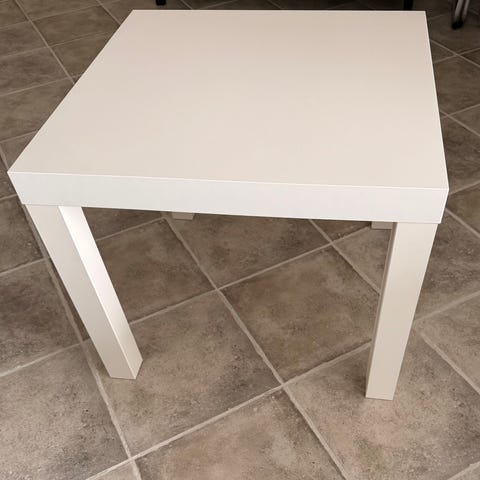 IKEA LUNNARP sidebord i hvit utførelse. Bordet har kvadratisk bordplate og en ekstra hylle under til oppbevaring. Passer som sidebord eller lite sofabord i stue, soverom eller entré. Designet av IKEA.