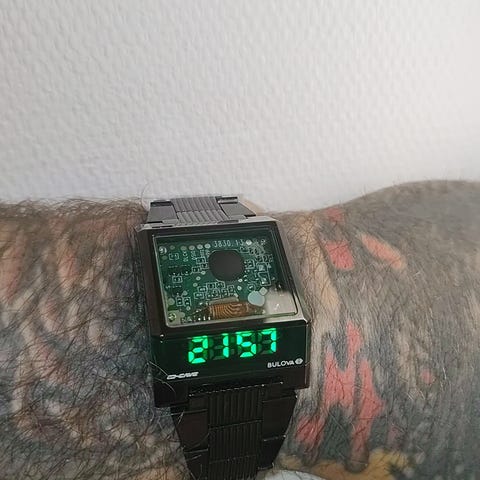 Retro digital klokke med skinnreim. Lite brukt og nytt batteri. Kan hentes i Nydalen i Oslo.