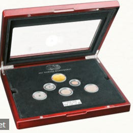 5 stk Verdens minste gullmynter, 1/25 oz, 999 Gull.
