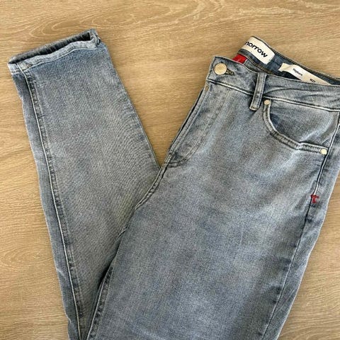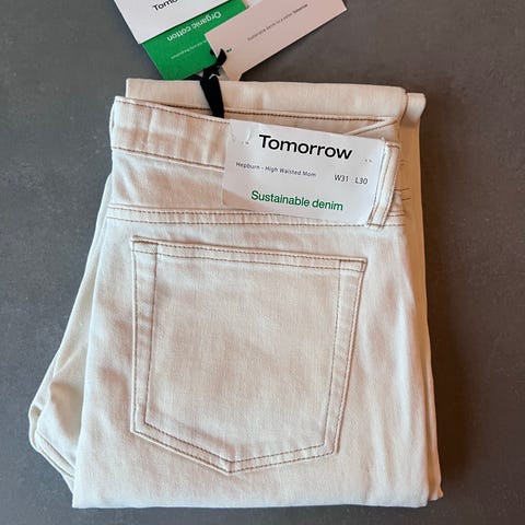 Jeans i str 30, modellen heter Hepburn og har høyt liv.