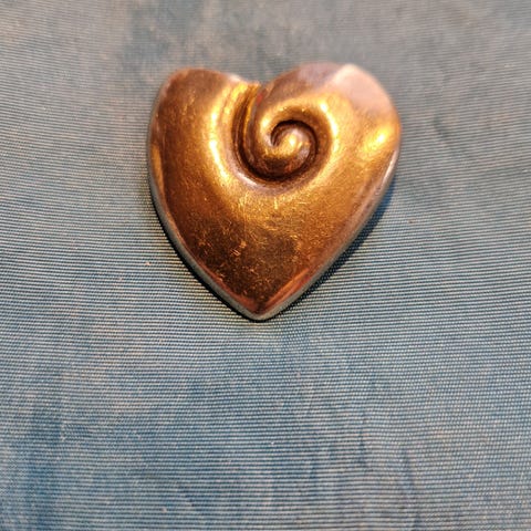 Stort, hamret sølvfarget hjerte. Justerbar. Dm. ca 2.8 cm. Høyde: ca. 3.5 cm. Inskripsjon: glede , godhet , kjærlighet, lykke, glede på siden av ringen.