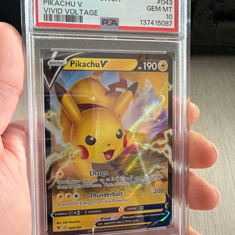 Pokémon Victini V samlekort fra 2020 Sword & Shield-serien. Kortet er gradert av PSA med karakteren GEM MT 10 og er innkapslet i PSA-plast. Motivet viser Victini V med 190 HP og angrepstekster på engelsk. Egner seg som samlerobjekt for Pokémon-kort og for oppbevaring i beskyttende kapsel.