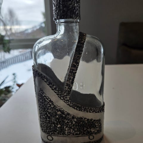 Proppen ligger inne i flasken ellers hel og fin med normale bruksmerker