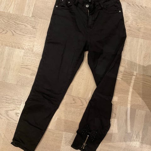 Gratis frakt! De hvite jeansene har fine detaljer og er lite brukt. Litt stretch.