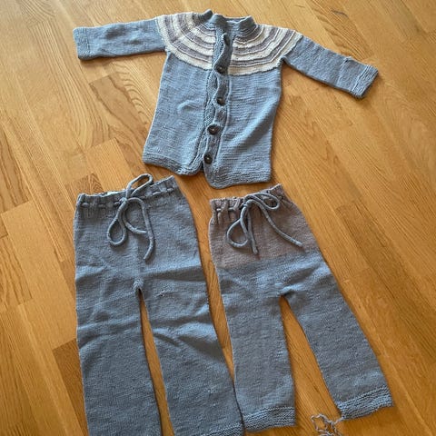 To jakker/cardigan og to strømpebukser. Ca 68/74.