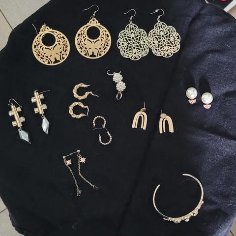Øreringer i gull uten stempel. Kan derfor ikke garantere gull og selges rimelig.