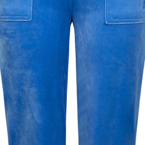 Juicy Couture joggebukser for dame i størrelse S. Buksen er i blå fløyel/velur. Den har bred, elastisk linning med snøring, skrålommer foran og påsydde lommer bak. Passer til hverdagsbruk og avslappede anledninger. Pent brukt og like fin i stoffet. Selges da jeg har for mange.
