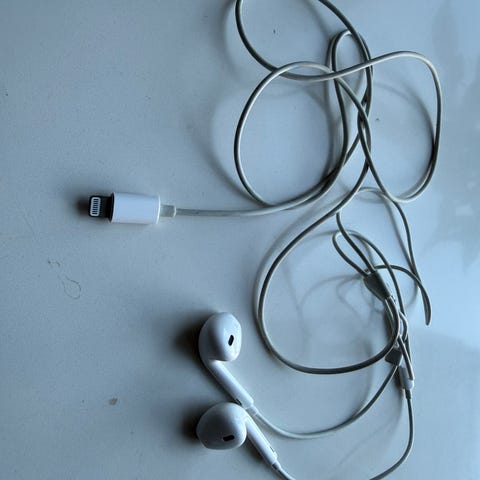 Selger to par hodetelefoner med Lightning-tilkobling. Ett par er originale Apple EarPods, og det andre er fra merket Jellico. Begge fungerer som de skal og er renset.