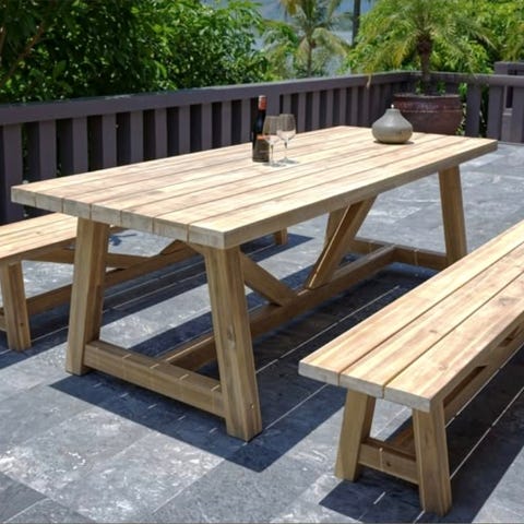 ✔ Hagegruppe med bord og to benker