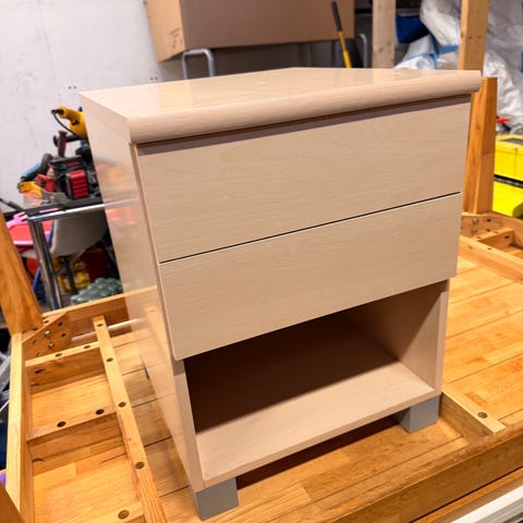 Pent brukt nattbord selges. Det har to bruksmerker, men disse er enkle å dekke over. Ellers fremstår bordet som nytt.