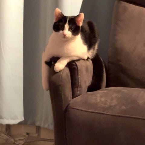 Han har vokst opp med andre katter og hund, større barn og er trygg og kjærlig liten gutt, som er både leiken å kontaktsøkende💙 Ikkje heilt fortrolig med støvsugeren enda, den er litt vel skummel😅 Men han har skjønt at under sofaen kommer den ikkje..😅