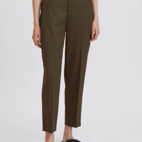 Klassiske sorte Karlie trousers fra Filippa K core collection. Lite og pent brukt, kun litt slitte i stoffet nederst ved sømmen på bena. Ny pris 2200,-