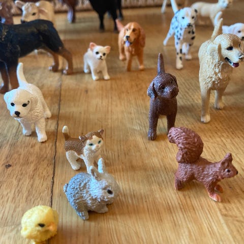 Schleich Sett med dyrefigurer i plast med motiv fra jungel og savanne. Blant figurene er blant annet løve, løveunge, leopard, gepard, panter, sebra, elefant, sjimpanse og ulike hovdyr. Står stødig