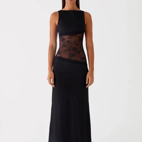 Selger en elegant svart kjole med fine blondedetaljer. Kun brukt 1 gang og fremstår som ny.