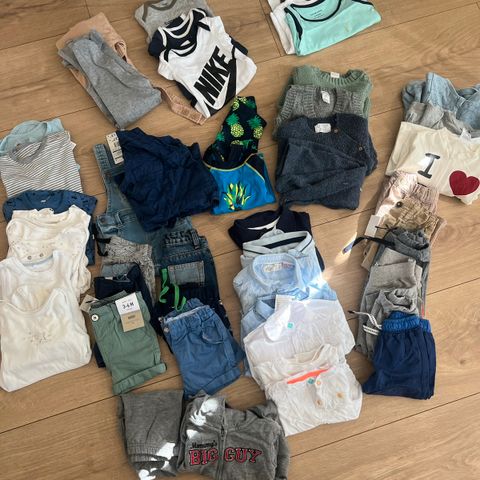 Gensere, bukser, chinos, t-skjorter, joggedress, treningsklær og shortser.