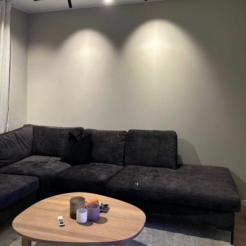 Sofaen er veldig behagelig å sitte i, og er et lite kunststykke i rommet.