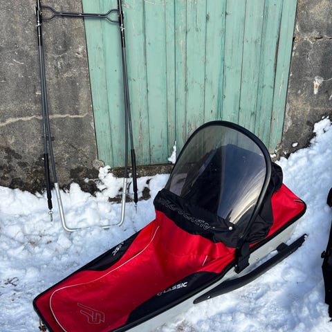 Pent brukt barnepulk med drag, sele og trekk til salgs. Pulken er på Haugastøl og må hentes i området Haugastøl - Ustaoset.