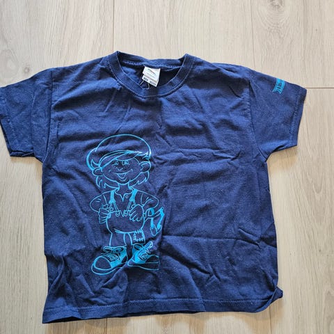 Selger godt brukt t-skjorte i str 104 med merke hm, den har et lite hull på baksiden, se bilde. Kan sendes om kjøper betaler frakt.