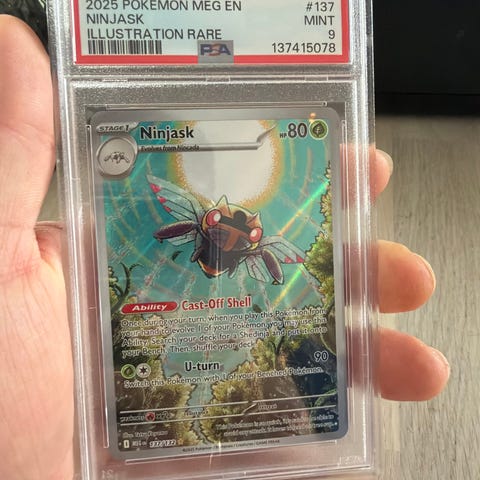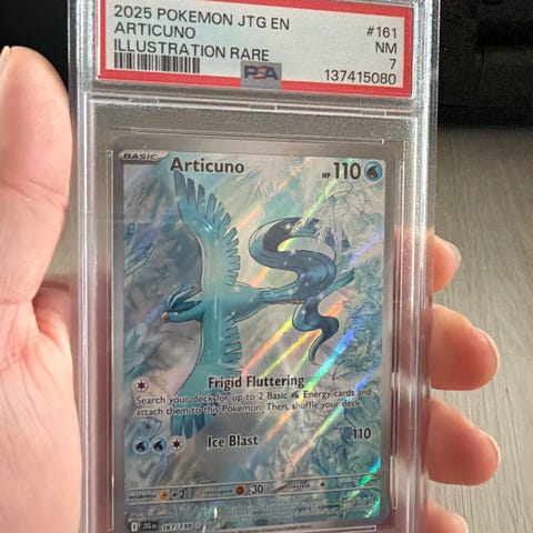 Pokémon Dragonite VSTAR samlekort fra settet Pokémon GO 2022. Kortet er en fullart regnbueversjon med 280 HP og VSTAR-angrep. Kortet er gradert av PSA med karakteren 7 (NM) og leveres innkapslet i offisiell PSA-holder med serienummer 137415027. Egner seg for samlere av Pokémon TCG og spesielt for de som samler på Dragonite- og VSTAR-kort.