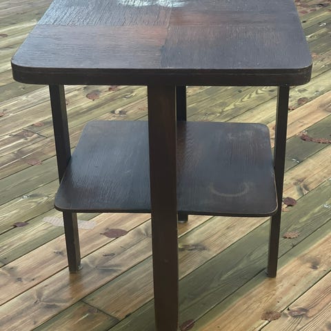 Koselig eldre lite bord i mørk brun farge. Godt brukt med noen hakk, men likevel kult og stilig.