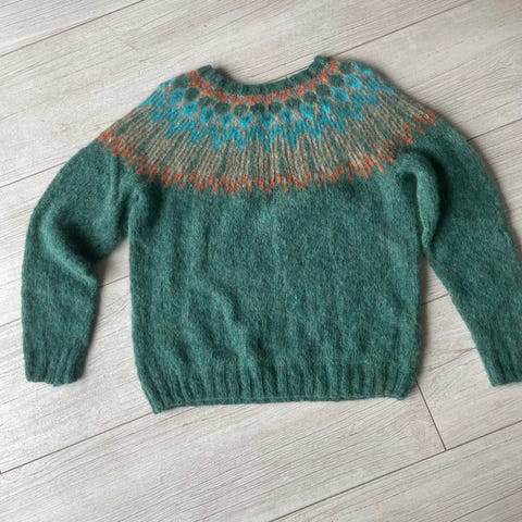 Hjemmestrikket Hopi genser i lettlopi, dame str M. Ny og ubrukt.