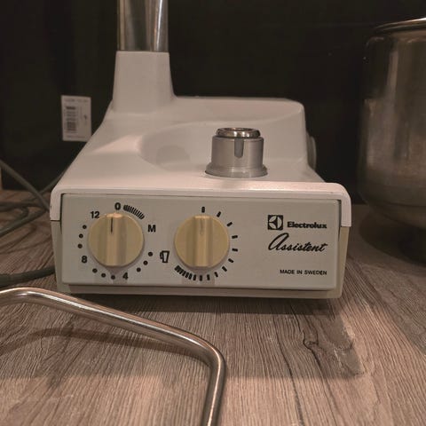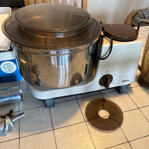 Selger en klassisk Electrolux Assistent N22 kjøkkenmaskin (400W), produsert i Sverige. Solid kvalitetsmaskin med metallbolle og flere originale deler.