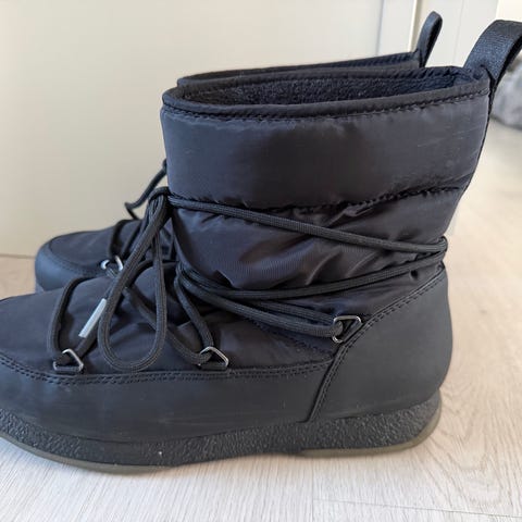 Selger et par stilige og varme Svea vintersko i størrelse 39. Perfekte som snow jogging / vinterstøvler til kalde dager. Skoene er lette, gode å gå i og har varmt fôr på innsiden som holder føttene varme gjennom vinteren.