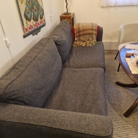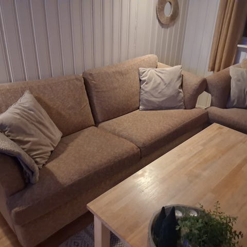 Litt tørr i skinnet, men ingen hull eller lign. Putene er faste og gode enda.