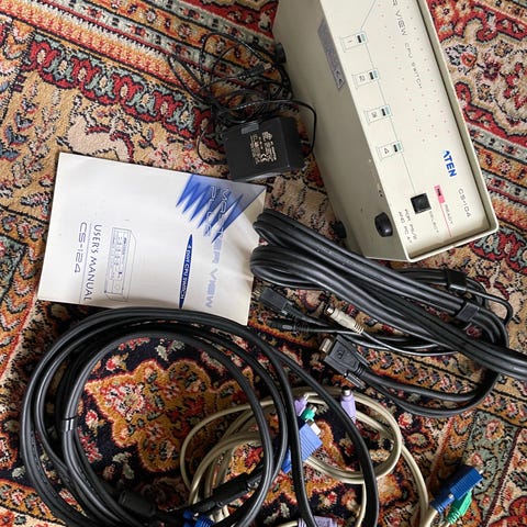 • 3 kabelsett følger med (VGA + USB + lyd), men enheten er ikke testet nylig.