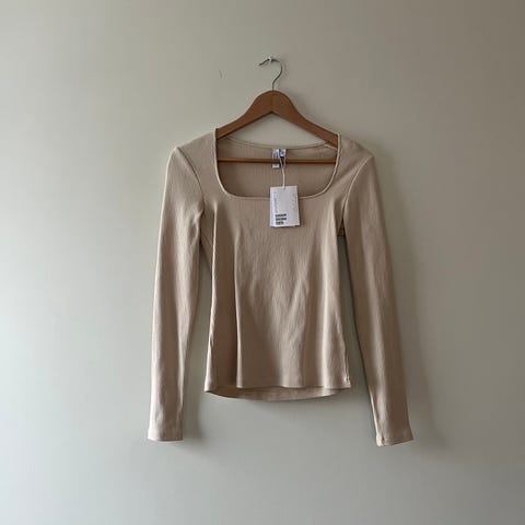Selger denne fine genseren, med volang ermer, størrelsen er S. Merket er Noella. Ingen bruksmerker. Veldig fin til hverdag og alt mulig bruk.