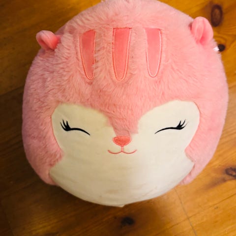 Squishmallows kosedyr i rosa farge. Myk og polstret plysjfigur med karakterdesign og broderte detaljer. Egnet som kosedyr eller pyntegjenstand på barnerom. Laget i mykt tekstilmateriale med fyll som gjør figuren formbar og behagelig å holde i.