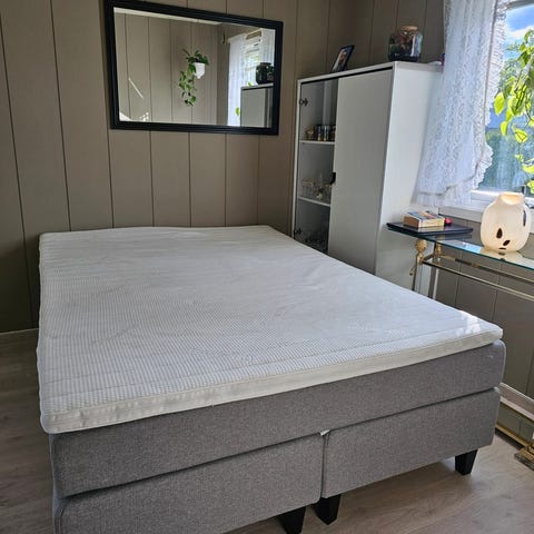 Sengen er nyrenset (vasket bÄde trekk til madrassene og overmadrassen i maskin) ,kan si er klart til nybruker nÄ.