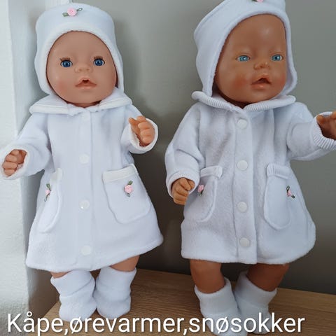 Nye hjemmestrikka dukkeklær , passer til dukke 40-42 cm . ( Babyborn ) Alle klærne på bilde selges samlet for tilsammen Kr 450,-
