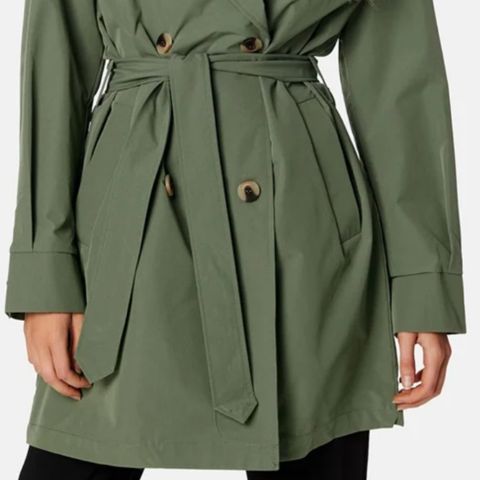 NA-KD kåpe for dame i størrelse S. Kåpen er grå og laget i polyester. Modellen har dobbeltspent front, krage og slag, samt belte i livet som kan knytes for justering av passform. Lengden går ned mot leggene, og ryggen har beltehemper. Ermene har stroppedetaljer ved mansjettene. Egnet som yttertøy i overgangssesonger og milde vinterdager.