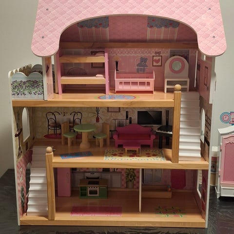 Dukkehus tre etasjer med møbler