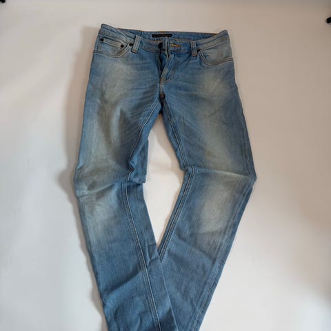 Nudie Jeans blå denim jeans med slim fit 🔵 Denne Nudie Jeans modellen har en klassisk blå vask og komfortabel passform. Perfekt for daglig bruk.