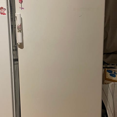Standard høyde-fryseskap med vertikal døråpning. Skapet er renset og støvsugd i bakkant.