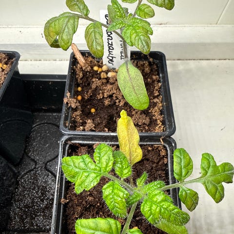 De ble sådd i oktober/november og har stått inne under vekstlys siden. Det er økologiske frø og økologisk jord (uten torv), med gjødsel fra egen bokashikompost og vermikompost.