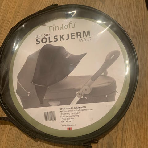 Ubrukt universal solskjerm til barnevogn. Selges fordi det ble kjøpt dobbelt.