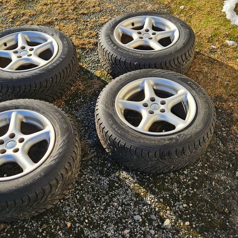 Dekkene er fra 2023 og har ca 4,5mm mønster igjen.