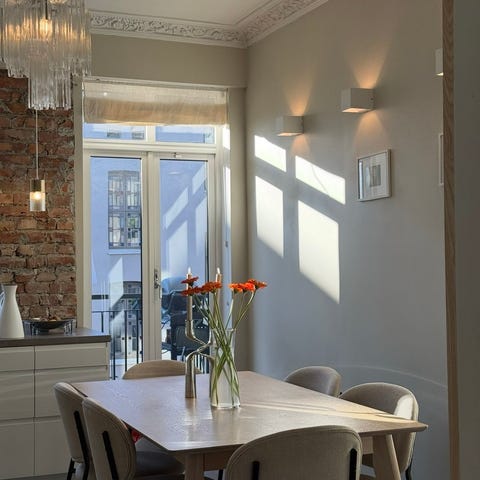 Selger et lekkert kvalitetsbord med matchende stoler.