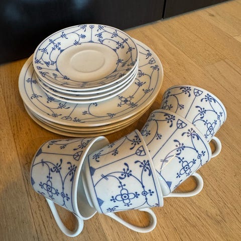 12 kopper - asjetter - frokost tallerken 8 eggeglass og 1 bolle