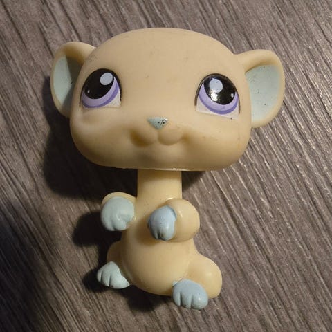 Littlest Pet Shop figur formet som en mus. Figuren er grå med lysgrønne og rosa detaljer, blant annet lilla øyne og rosa sløyfe på hodet og hale. Plastfigur egnet som samlefigur eller til lek for barn som liker Littlest Pet Shop-universet.Nøkkelinformasjon